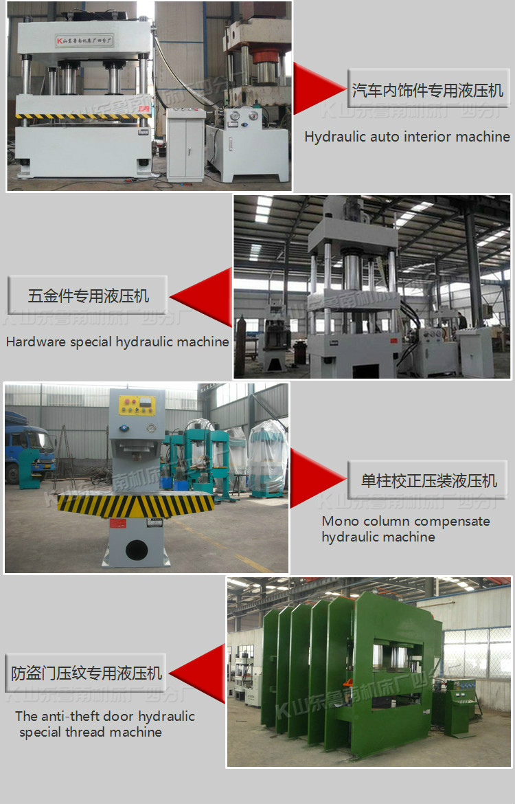 三梁四柱液壓機(jī)采用四柱三板式結(jié)構(gòu),具有獨(dú)立的動(dòng)力機(jī)構(gòu)和電氣系統(tǒng),采用按鈕集中控制,可實(shí)現(xiàn)調(diào)整、手動(dòng)及半自動(dòng)三種工作方式。動(dòng)力機(jī)構(gòu)由油箱、高壓泵、控制系統(tǒng)、電動(dòng)機(jī)、壓力閥等部分組成。設(shè)備的工作壓力、壓制速度,空載快下行和減速的行程和范圍,均可根據(jù)工藝需要進(jìn)行調(diào)整;該液壓機(jī)適用于薄板拉伸成型、粉末制品成型、塑料制品成型、冷熱擠壓金屬成型、油箱、底盤、汽車零部件等的橫壓、彎壓、翻透、校正等工藝。