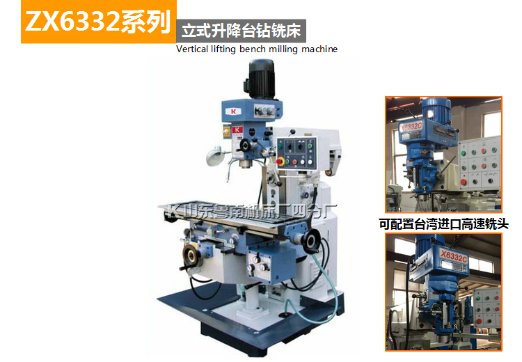 ZX6332鉆銑床整體采用優(yōu)質(zhì)樹(shù)脂砂鑄造,齒輪采用淬火磨齒,使用壽命長(zhǎng);根據(jù)材質(zhì)的不同,可以配置臺(tái)灣高速炮塔銑頭,切削轉(zhuǎn)速高。也可以配置數(shù)顯光柵尺,提高加工精度。
